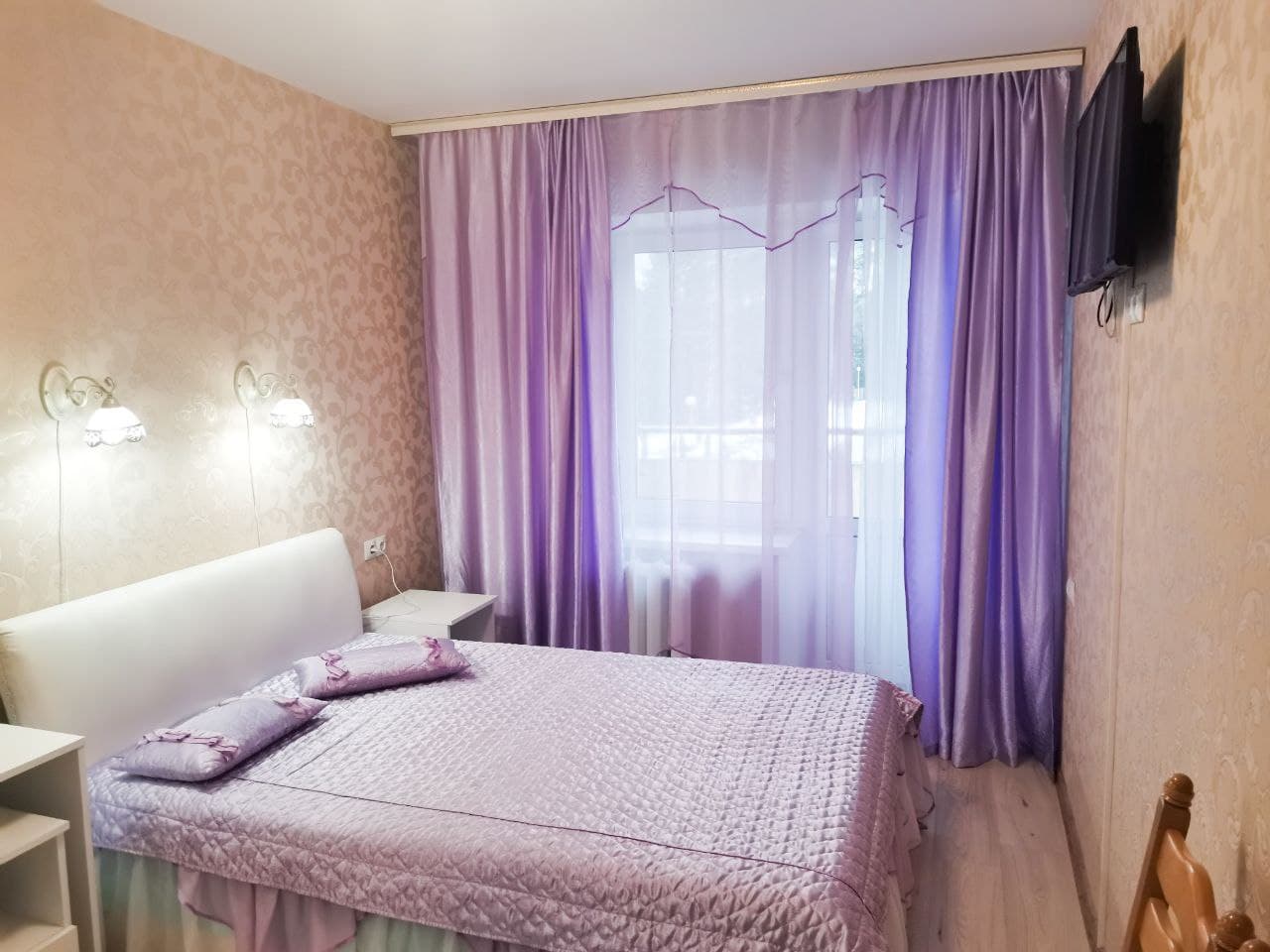 Одна двуспальная кровать, 2 прикроватные тумбочки, 2 стула, шкаф-купе, зеркало, телевизор, посуда. 1 санузел. Кабельное телевидение, бесплатный Wi-Fi.