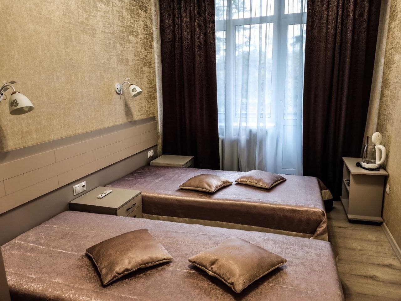 Две отдельные односпальные кровати, 2 прикроватные тумбочки, 2 стула, шкаф-купе, зеркало, телевизор, посуда. 1 санузел. Кабельное телевидение, бесплатный Wi-Fi.
