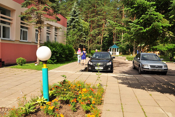 Территория белорусского санатория "Ислочь" огорожена и круглые сутки охраняется, имеется автомобильная стоянка.