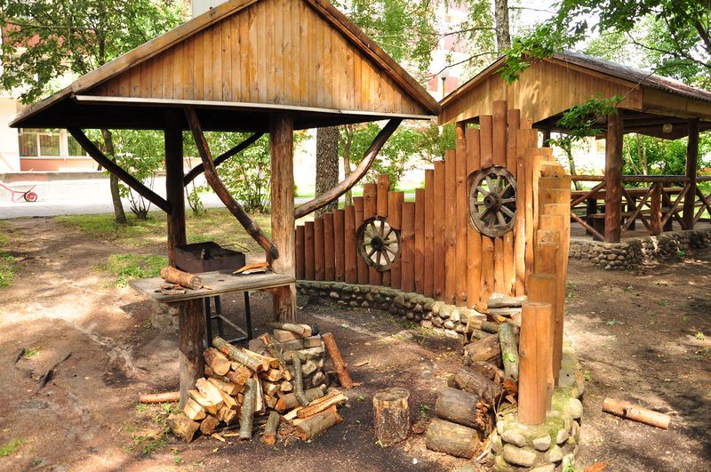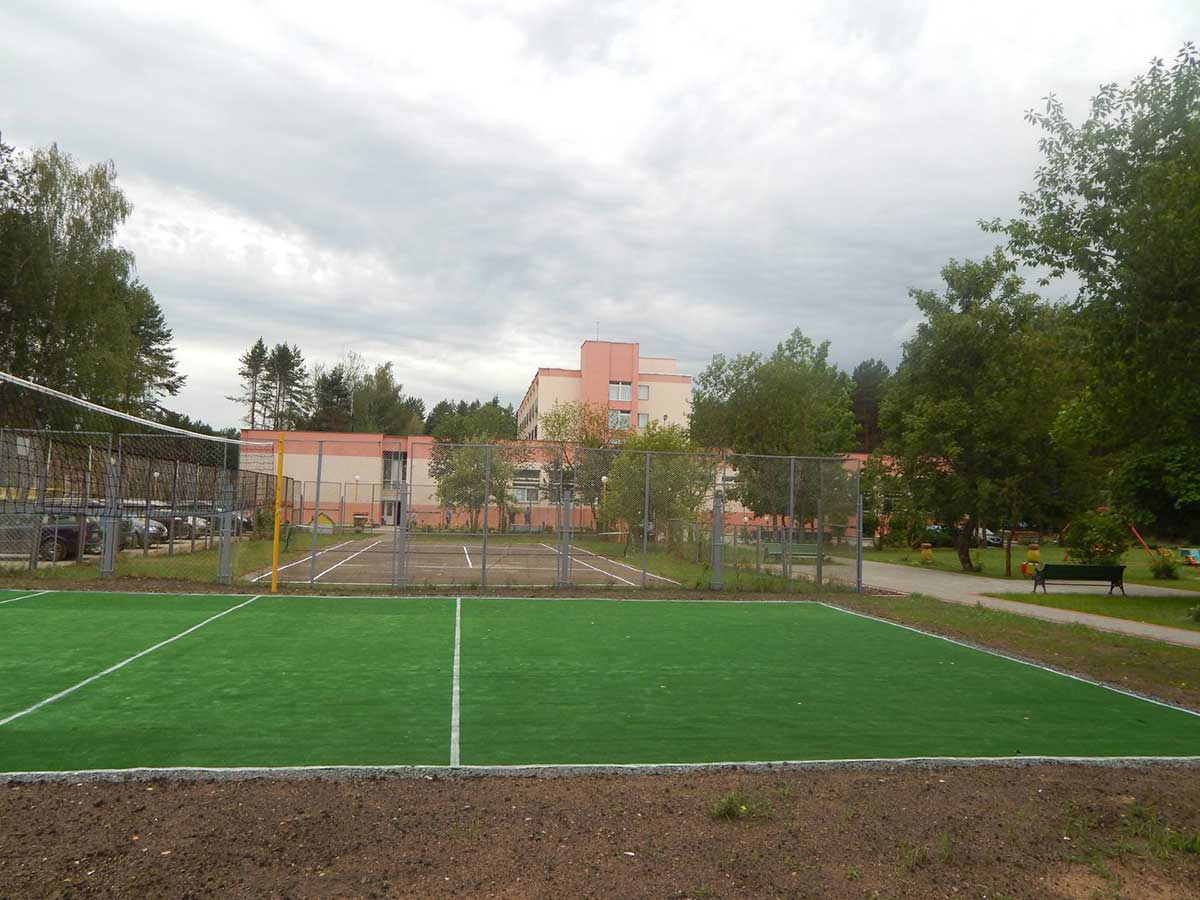 Территория санатория озеленена соснами, елями, жасмином, сиренью, ветлой и боярышником.